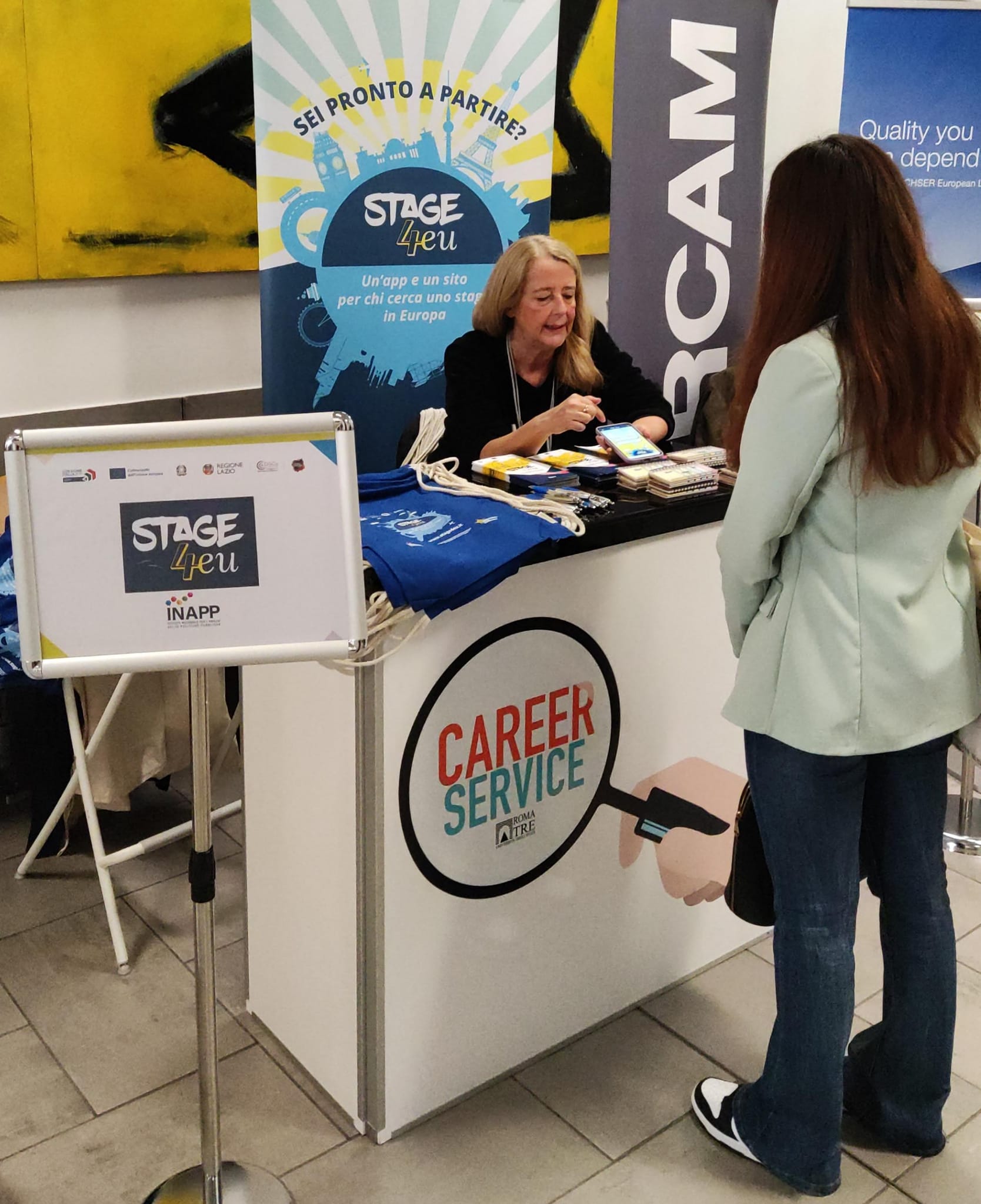 Presso lo stand Stage4eu/Inapp sono state presentate ai numerosi studenti e neolaureati intervenuti le caratteristiche e le funzionalità dell’app e del sito Stage4eu.
